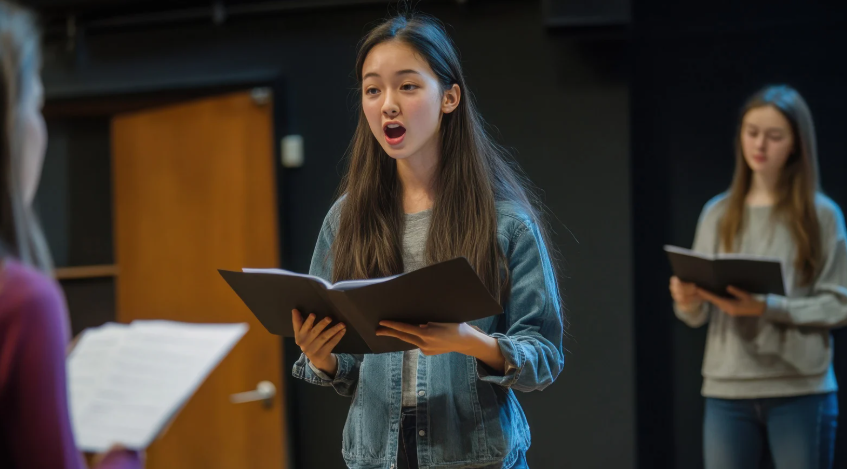 対面レッスンならではの、空気の振動まで共有するような指導。講師は単に「お腹から声を出して」といった抽象的な言葉ではなく、解剖学的な視点や音響学的な視点を交えて、具体的に体の使い方を指示します。